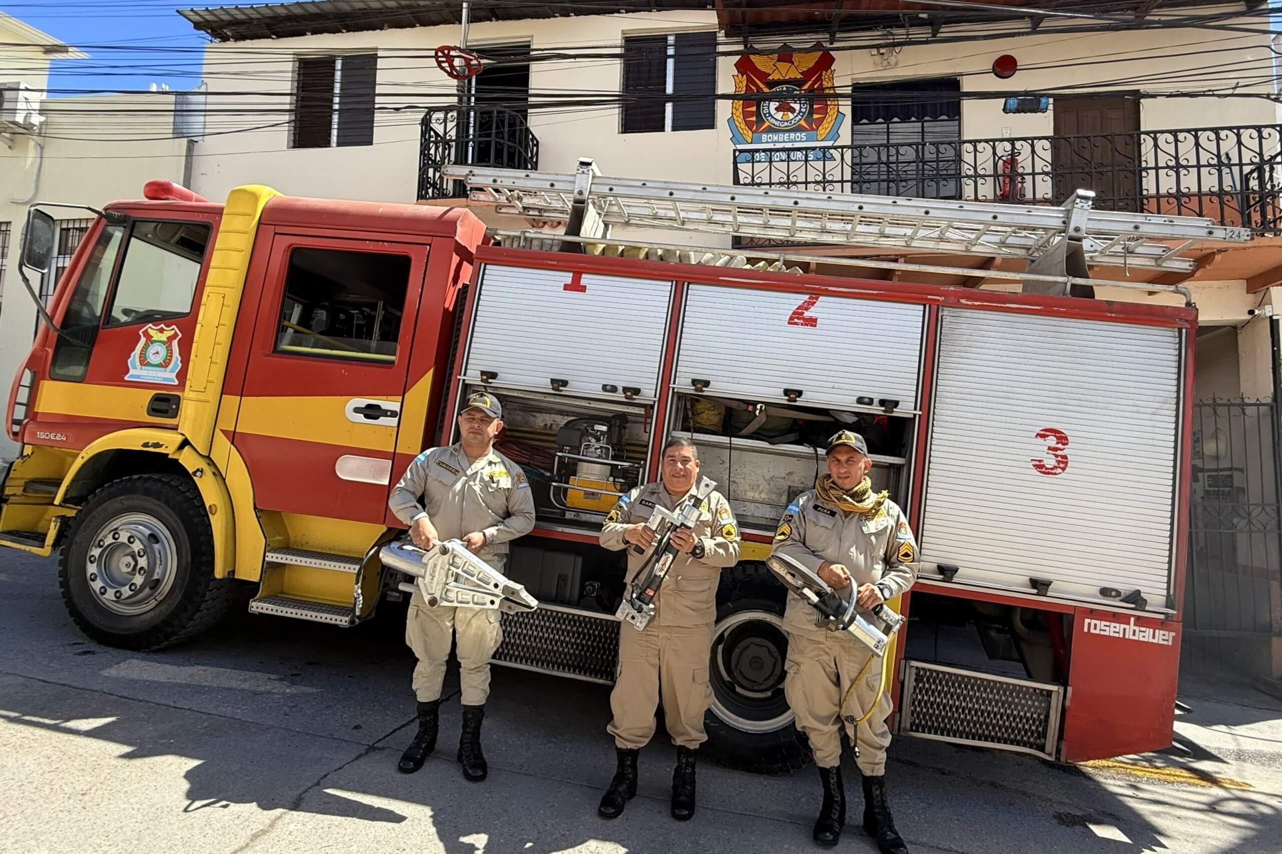 Tras la donación, los bomberos de Santa Rosa de Copán recibieron capacitación práctica en rescate vehicular, fortaleciendo su capacidad de respuesta ante accidentes de tránsito de alto riesgo en Honduras.